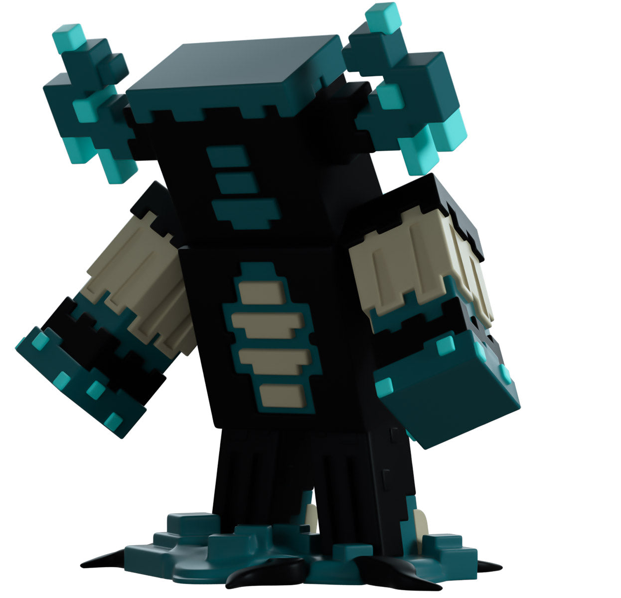 Summoned into Youtooz to lean back at 4.1 inches tall and unleash an immense sonic boom from a dark green chest, their blocky arms are thrust backwards from the force of the devastating attack as a curved green mouth sits upon their dark eyeless face. With two long horns that have bright aqua blocks extending from the side of their head, their arms are a bone brown which matches their exposed ribs and feet which are planted on top of a dark sea floor. The exterior of their packaging sees you deep under the sea encountering a Warden as it’s too late! While the interior surrounds them in dark blue and aqua blocks, which continue onto the protective sleeve as their figure can be seen through the large clear window at the packaging’s front. This collectible ships in a matte, embossed, protective outer sleeve and a custom-sized plastic protector for maximum protection during shipping.