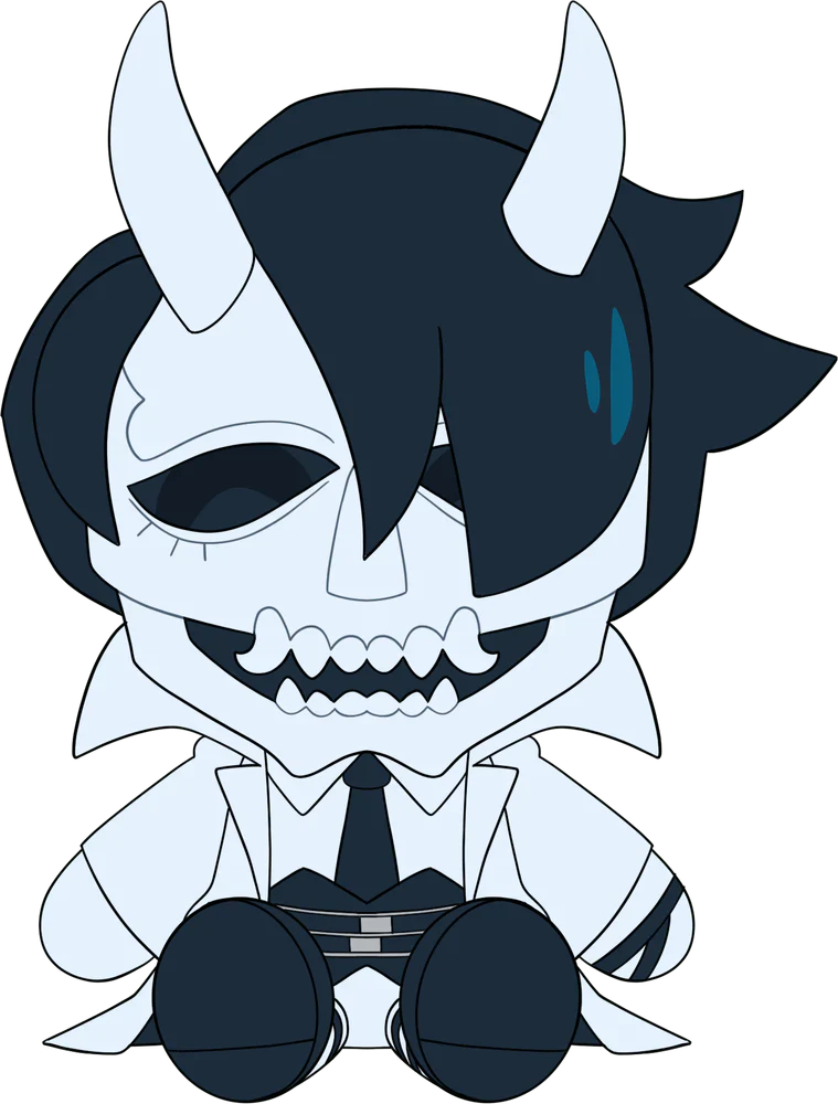 Come meet our new demon, on loan from hell, this Neon is ready for a fight! We have teamed up with Neon White to bring one of their Neons into plush form! Sitting at 9-inches tall, this masked demon is dressed for success. He is seated with his feet forward and is wearing black shoes with white and black striped pants. He has a long white trench coat and white shirt, with a black waist cincher and tie. His angular white demon mask is framed by a popped collar and his quaffed black hair. Two long horns extend from the top of the mask. This plush is packed to the seams with 100% PP cotton and is made of a mix of the softest minky material, perfect for cuddling or killing demons with!