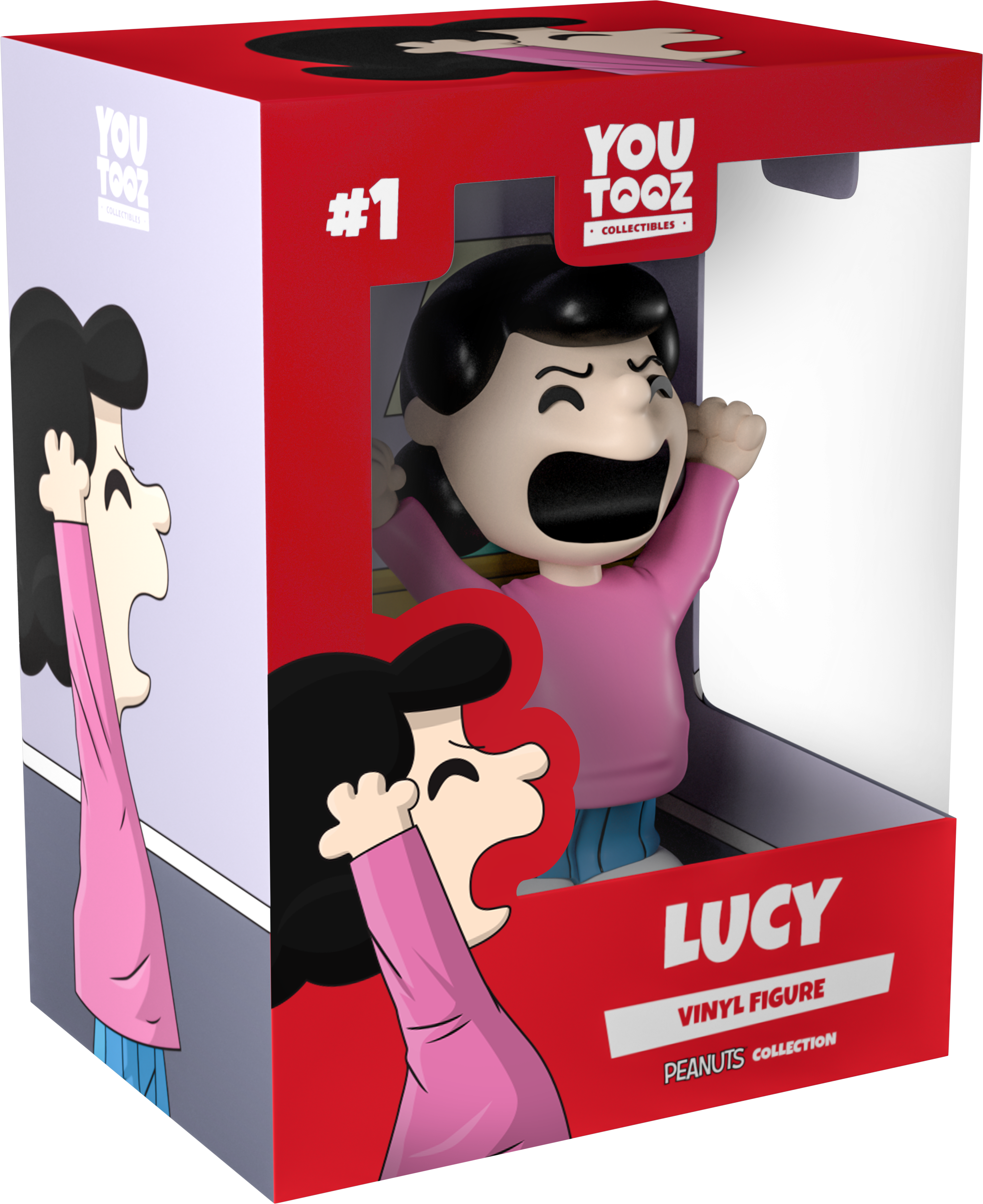 For every Charlie Brown, there is always a Lucy. The world's number one fussbudget for three years in a row, I swear she didn't force us to make her. Lucille van Pelt stands shouting at a total height of 4.5 inches, and is as fussy as usual. In her classic curmudgeon style, she is likely accosting us in her pink shirt, holding her head in amazement. She can't believe what she has to listen to, and honestly, who could blame her? Watch as she complains from the comfort of her living room inside her beautifully illustrator Youtooz window box. Luckily, no Charlie Brown's were hurt in the making of this Youtooz.